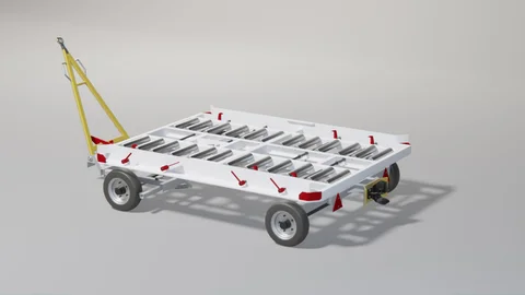 Der Container Dolly D05-000-TDR (CTA 1.8) wurde für den Transport von Paletten und Containern unterschiedlicher Formate entworfen, konstruiert und gebaut. Die maximal zulässige Belastung beträgt 1800 kg. Es können mehrere Dollies über Zugdeichsel und Anhängekupplung aneinandergekoppelt werden.