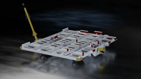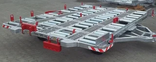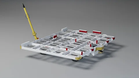 Der Container Dolly D10-100-TDQ wurde für den Transport von Paletten und Containern konzipiert. Die stabile Stahlkonstruktion hat eine maximal zulässige Zuladung von ca. 8000 kg. Die gesamte Ladefläche ist mit 4 Rollenbahnen sowie mit Anschlägen, Stopps und Verriegelungen versehen.