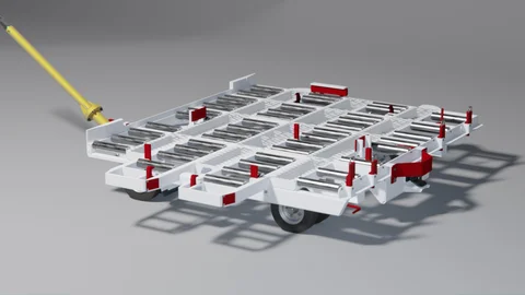 Durch Aufnahmen an der Unterseite lässt sich der Dolly von der Seite sicher mit einem Gabelstapler aufnehmen. Die Ladefläche des Dollys ist als Rollenbett ausgeführt, das sich über die gesamte Ladefläche erstreckt. Durch unterschiedliche Rollenverteilung ergibt sich eine verbesserte Auflagefläche für die Container und Paletten.